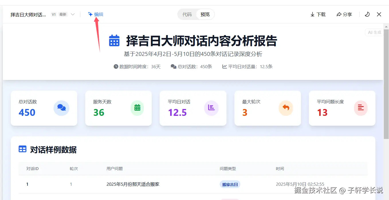会弹出让你上传你想要转换的数据表格,比如我之前做了一个智能体,已经3万多人用过了,有很多对话记录和使用情况,我不可能人工去分析吧?