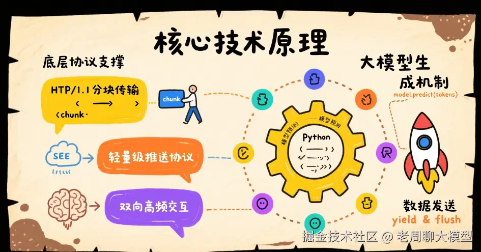 流式输出(Streaming Output) 通过分块传输技术逐段返回结果,成为提升用户体验的关键解决方案。本文将深入解析其技术实现与优化策略。