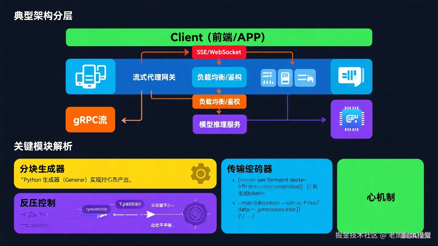 - 分块生成器:通过Python生成器(Generator)实现按token产出