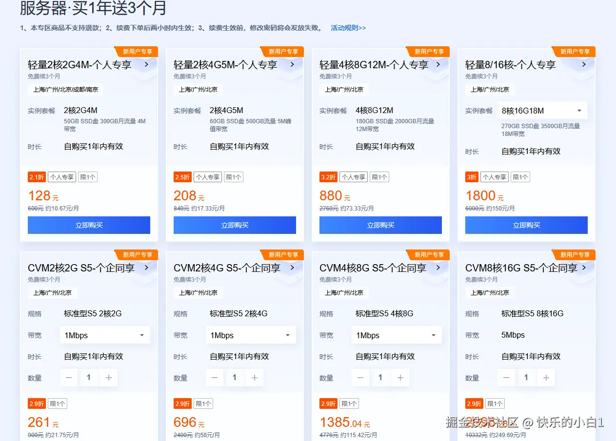 1.进入服务器活动专区,挑选合适的服务器,现在服务器活动力度很大!最低一年128就能带回家,如果你想长期拥有可以继续滑动鼠标看看下面的活动,3年5年机优惠力度更大。