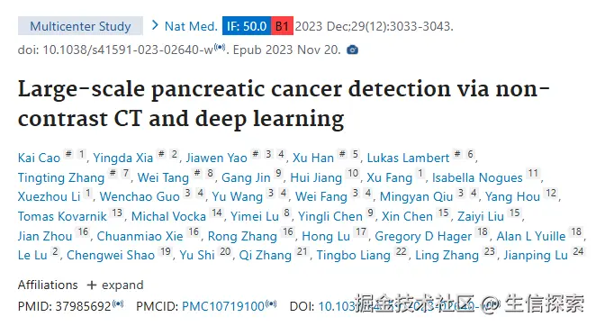 模型可利用胸部 CT(非专门扫描胰腺)实现胰腺癌筛查,拓展应用场景