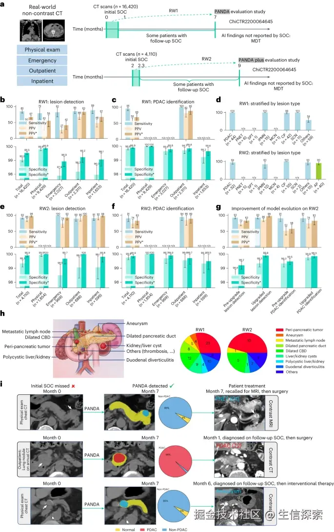 - f图:展示 AI 检出的早期胰腺癌和自身免疫性胰腺炎,均被医生漏诊,体现 AI 对细微特征的敏感性。