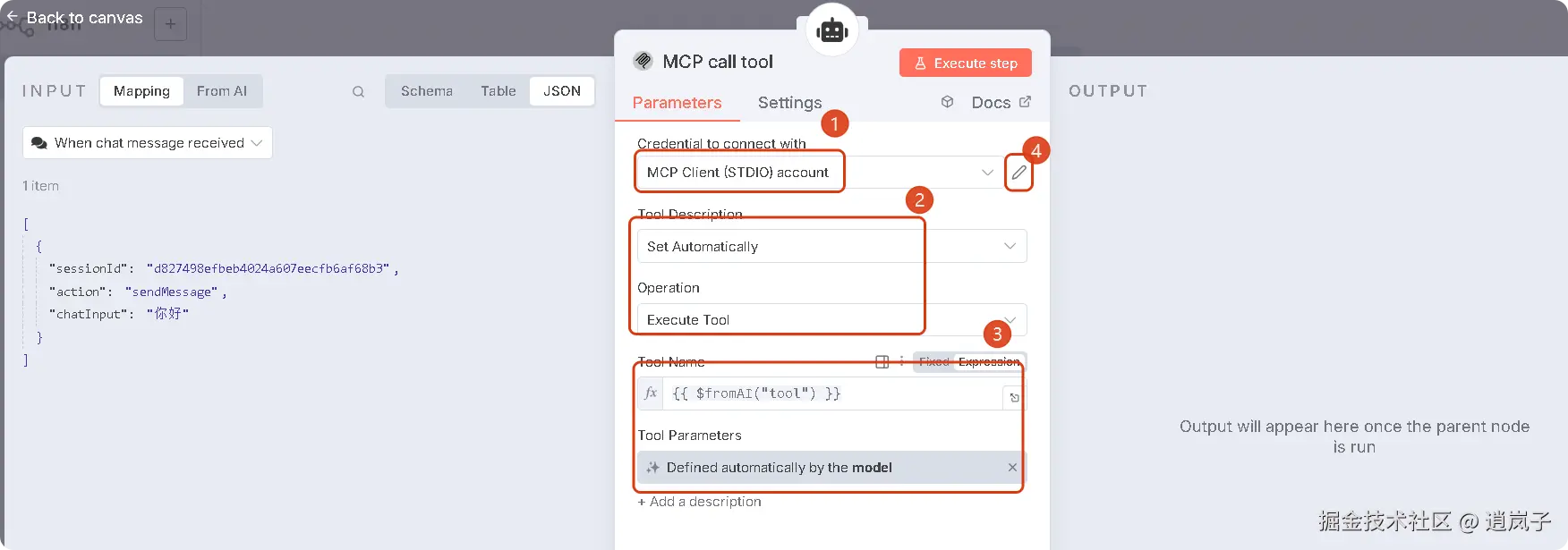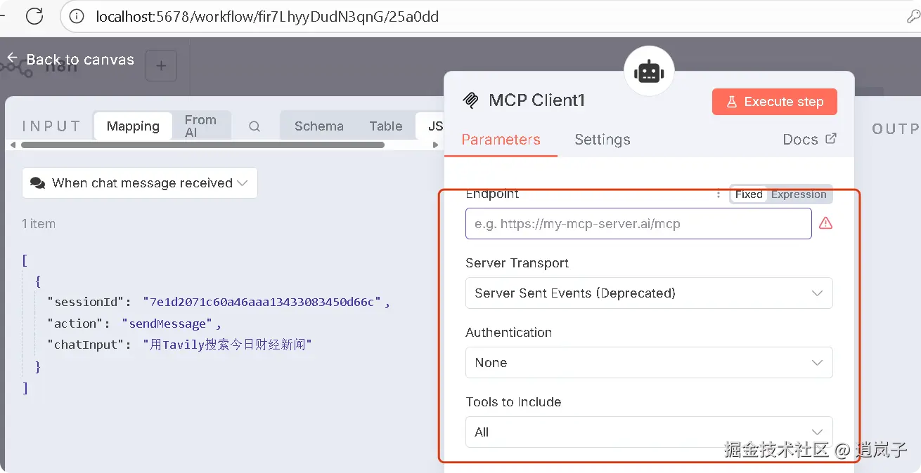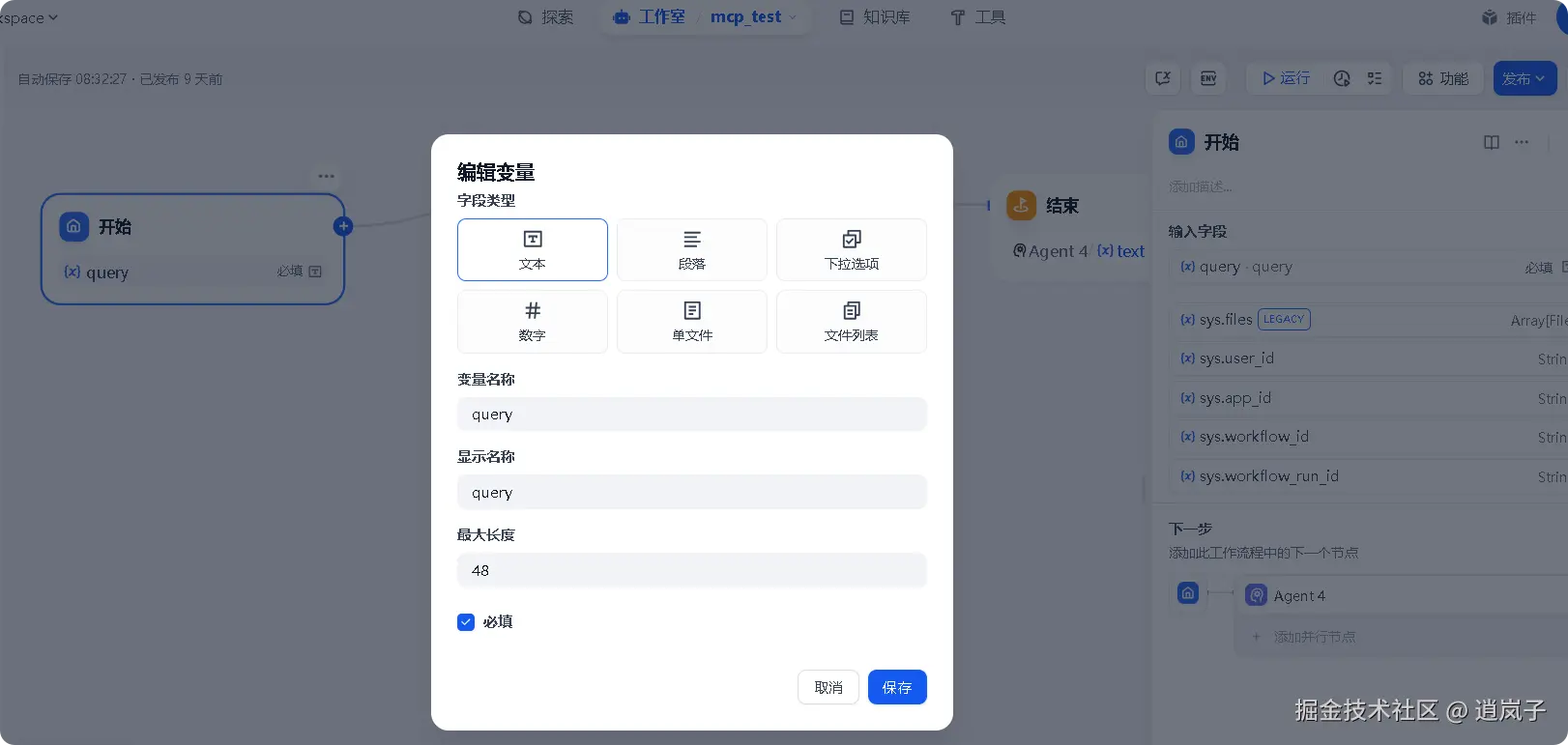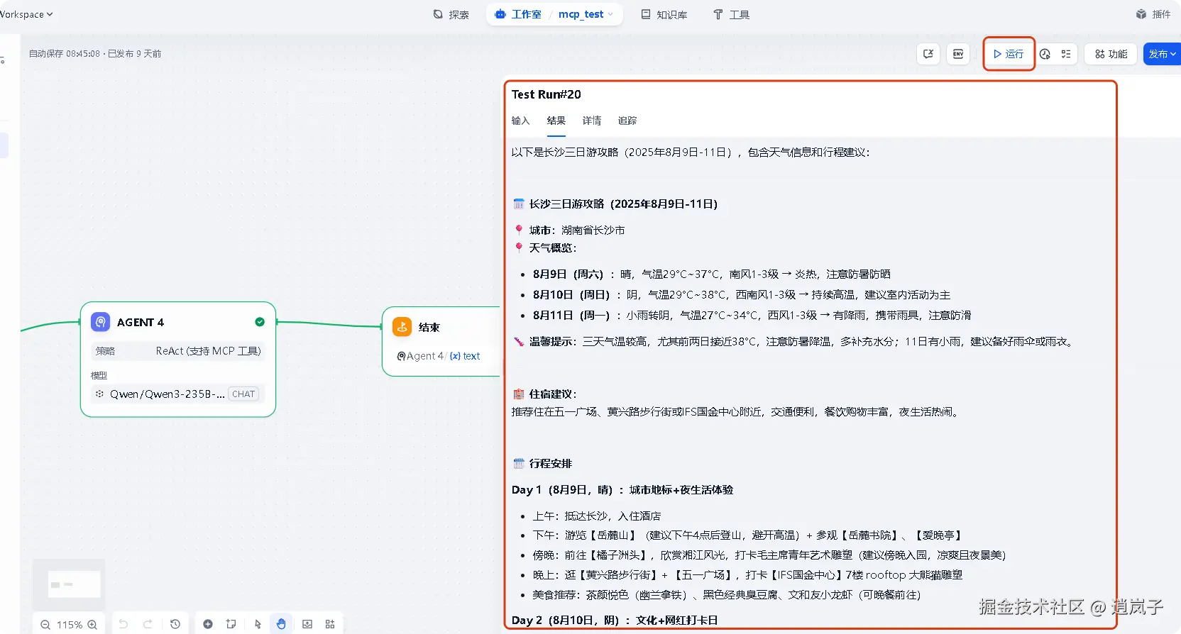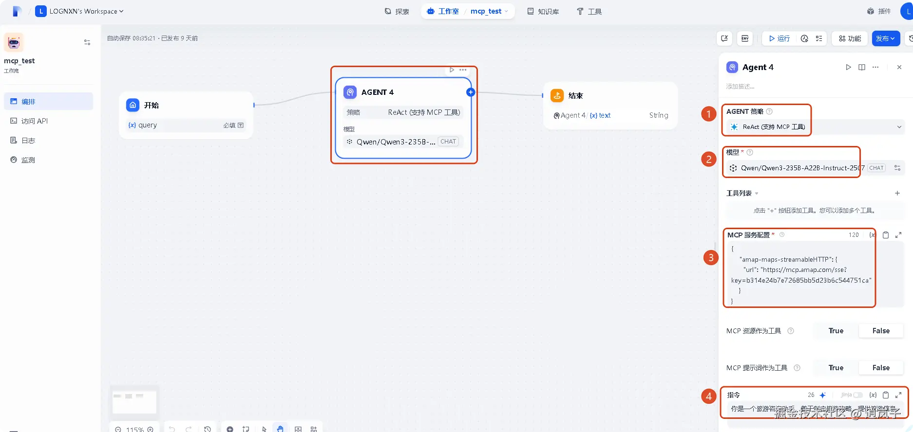 配置 mcp server,方式同 3.4.1 的【工具列表】节点配置