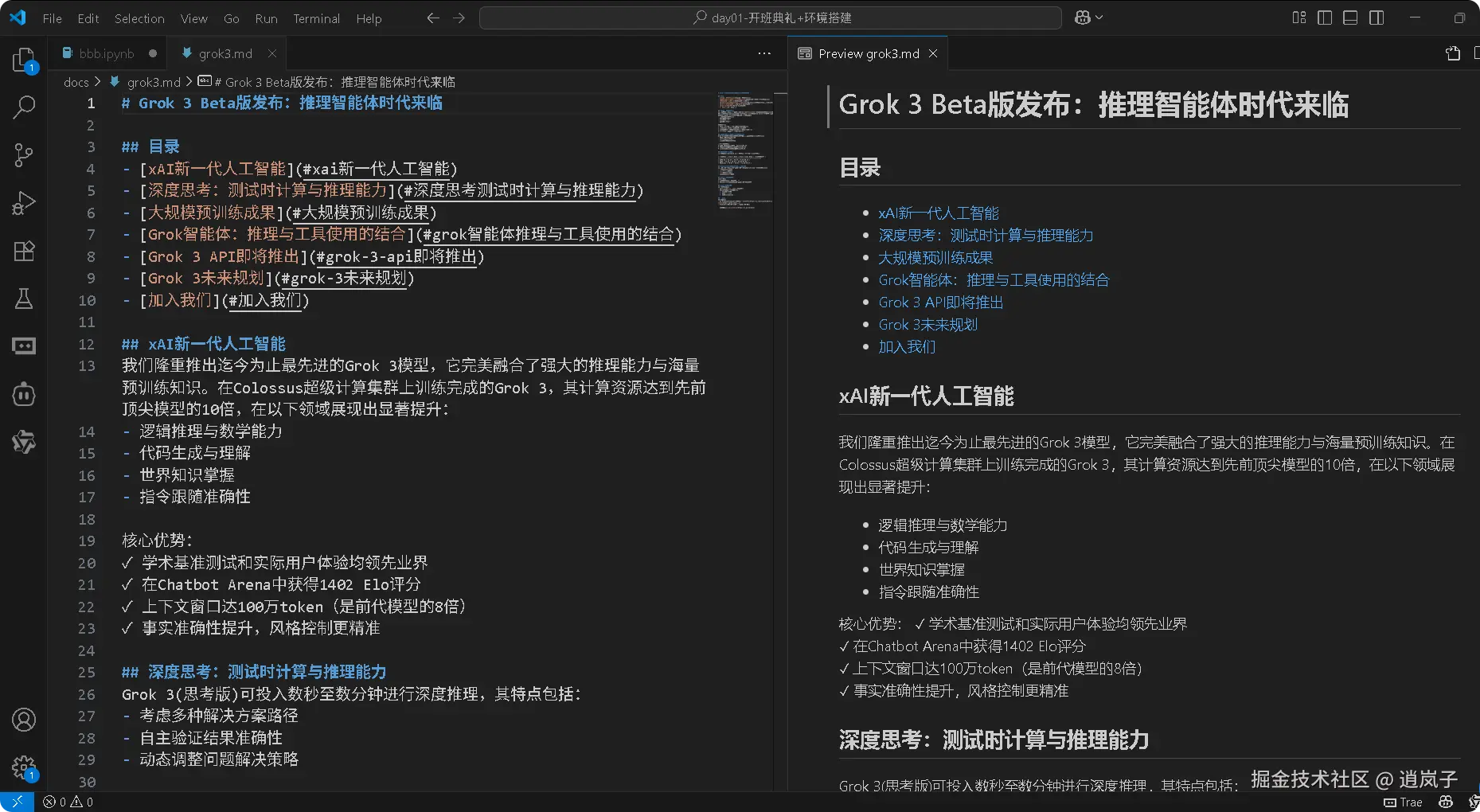 从连接[x.ai/blog/grok-3]获取内容,已 markdown 格式写入到@/docs/grok3.md 中
