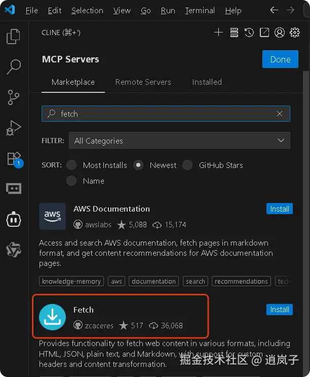 Fetch 用于网页抓取,搜索后,点击 install 进行安装