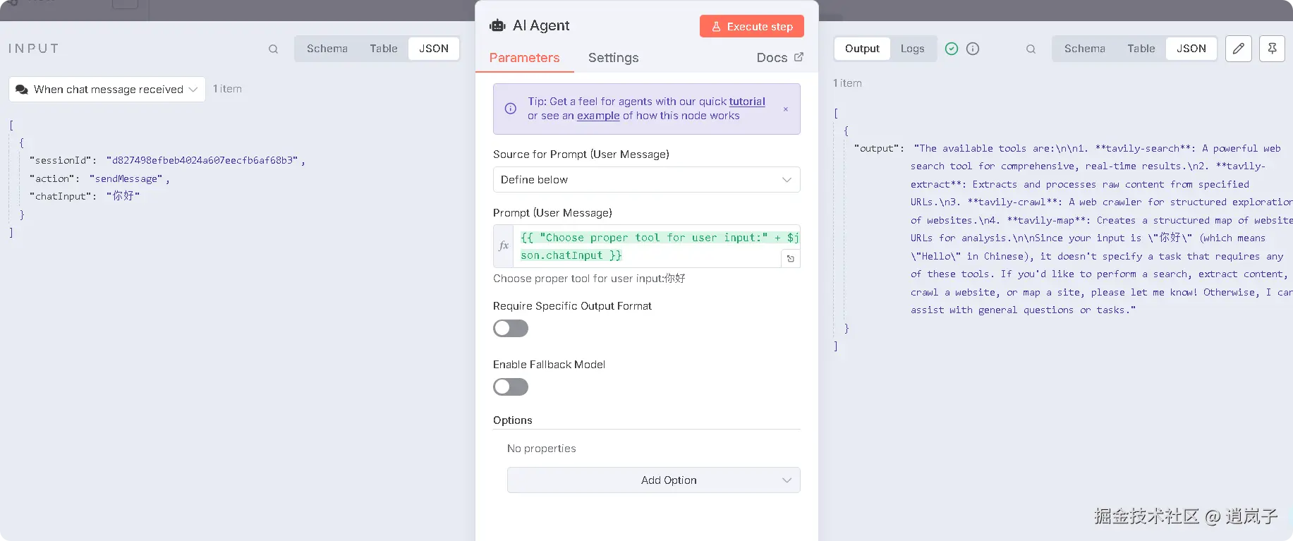 {{ "Choose proper tool for user input:" + $json.chatInput }}