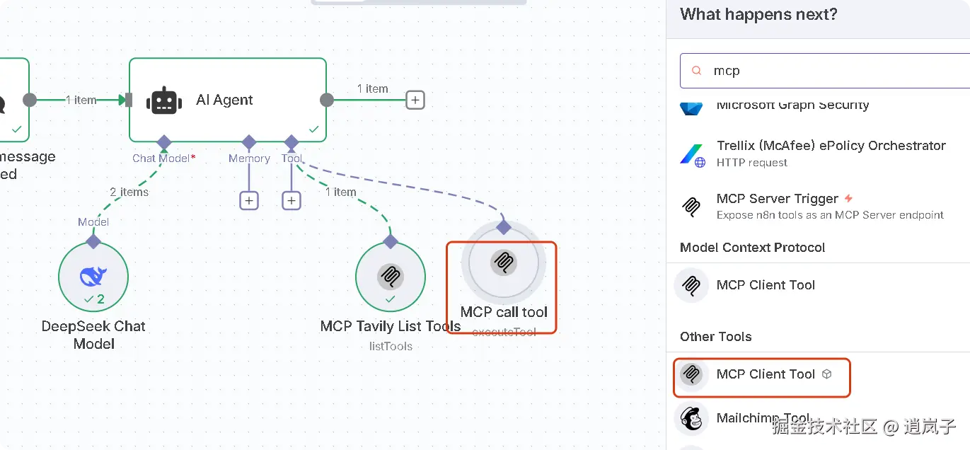 在 n8n 中,用于支持 mcp 调用的有两种节点: