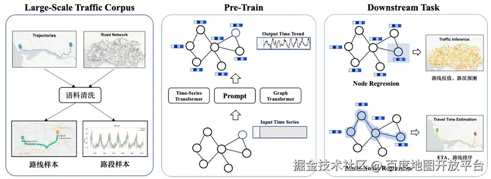 大模型预训练:定期基于海量历史交通数据,训练以速度预测为核心优化目标的交通大模型底座。