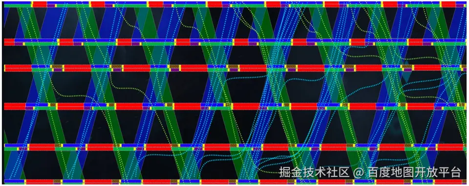 **百度地图基于海量脱敏位置服务数据,结合静态道路拓扑结构,能够精准计算出红绿灯信号机的底层配时方案数据。**这些数据涵盖信号机方案的切换具体时间点,以及每个时间段内的红灯、绿灯、黄灯时长和总周期等信息。同时,百度地图还能挖掘出路口内的放行规律,例如某个十字路口的东西方向是单口放行、对向放行还是搭接放行。随着北斗高精定位技术以及大模型算法能力的不断提升,百度地图在AI超视距感知红绿灯倒计时方面已实现分秒不差的精准预测。