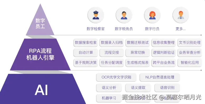 传统 RPA 适用于规则明确的重复任务,融入 AI 技术后能力大增。融合自然语言处理、机器学习等技术的 RPA,可处理政策文件等非结构化数据。如实在智能的 “政策计算器”,能自动匹配企业与政策福利,解决人工审核弊端,实现 “感知 - 分析 - 执行” 一体化,为决策提供科学依据。