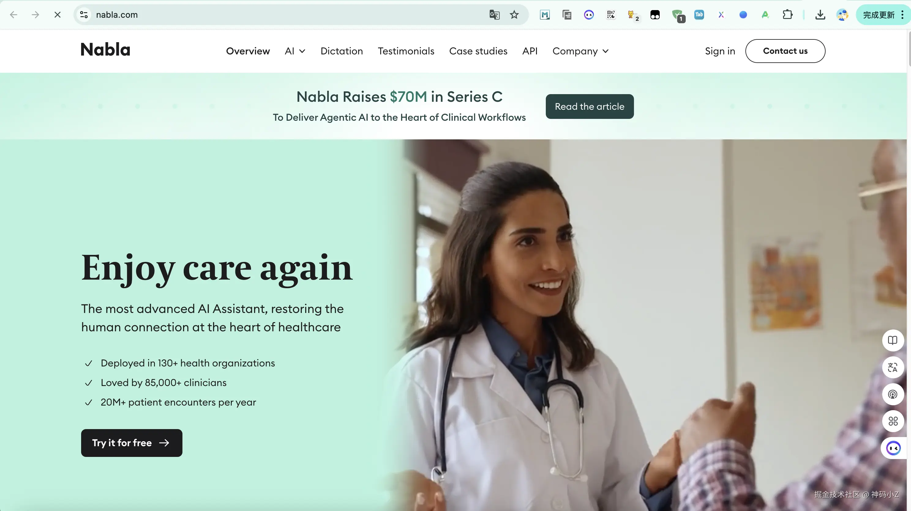 Nabla专门服务医生,能实时转录、生成病历、提供编码建议。医疗行业对准确性要求极高,Nabla能在这个领域站稳脚跟,说明技术确实过硬。