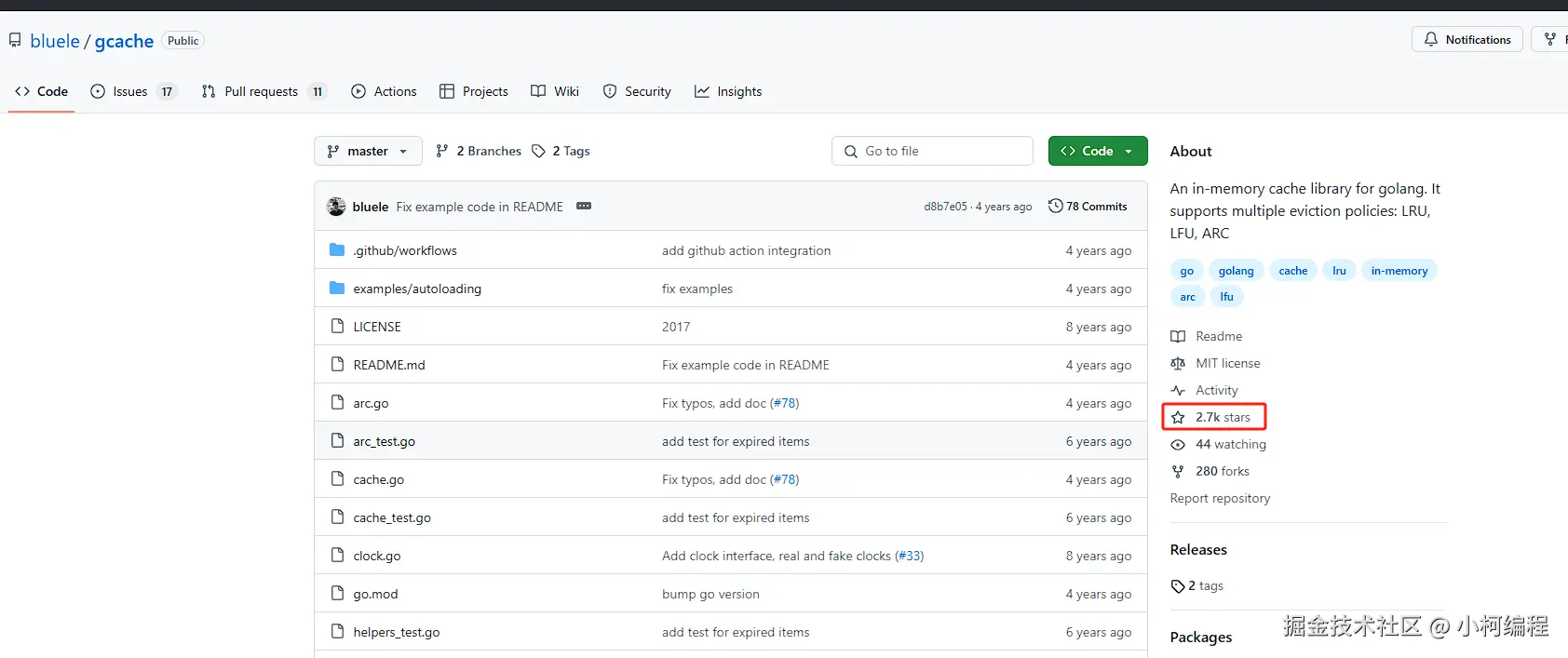 这个库目前2.7k star,算是能找到的LFU实现里还不错的