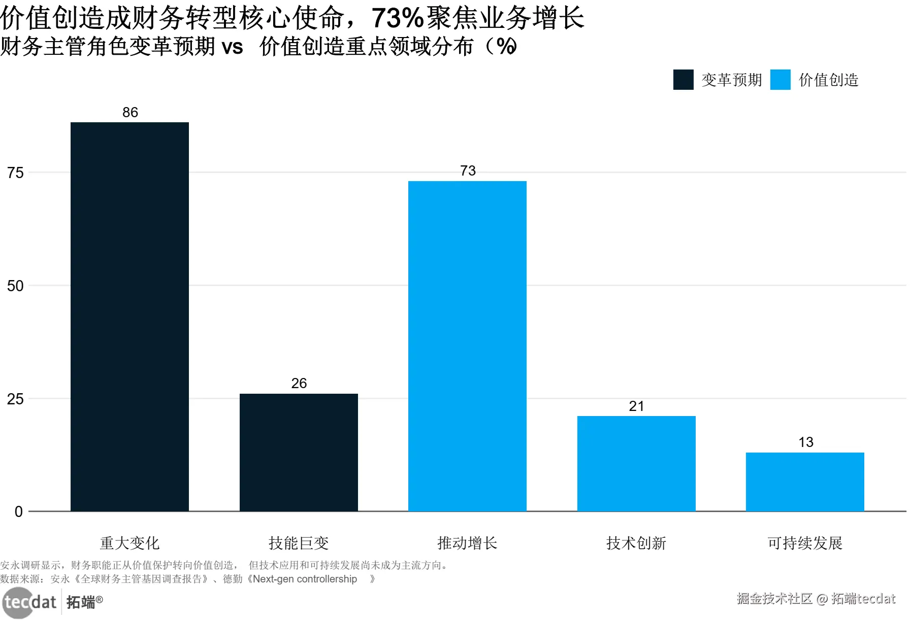 财务主管角色变革预期与价值创造优先级图表数据及PDF模板已分享到会员群