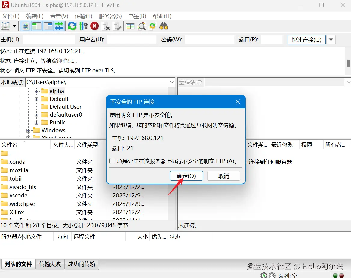 - 使用 vi 编辑器打开 FTP 配置文件: