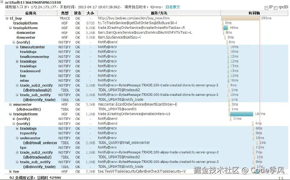 - 服务名 / 方法名:调用了哪个服务的哪个接口;
