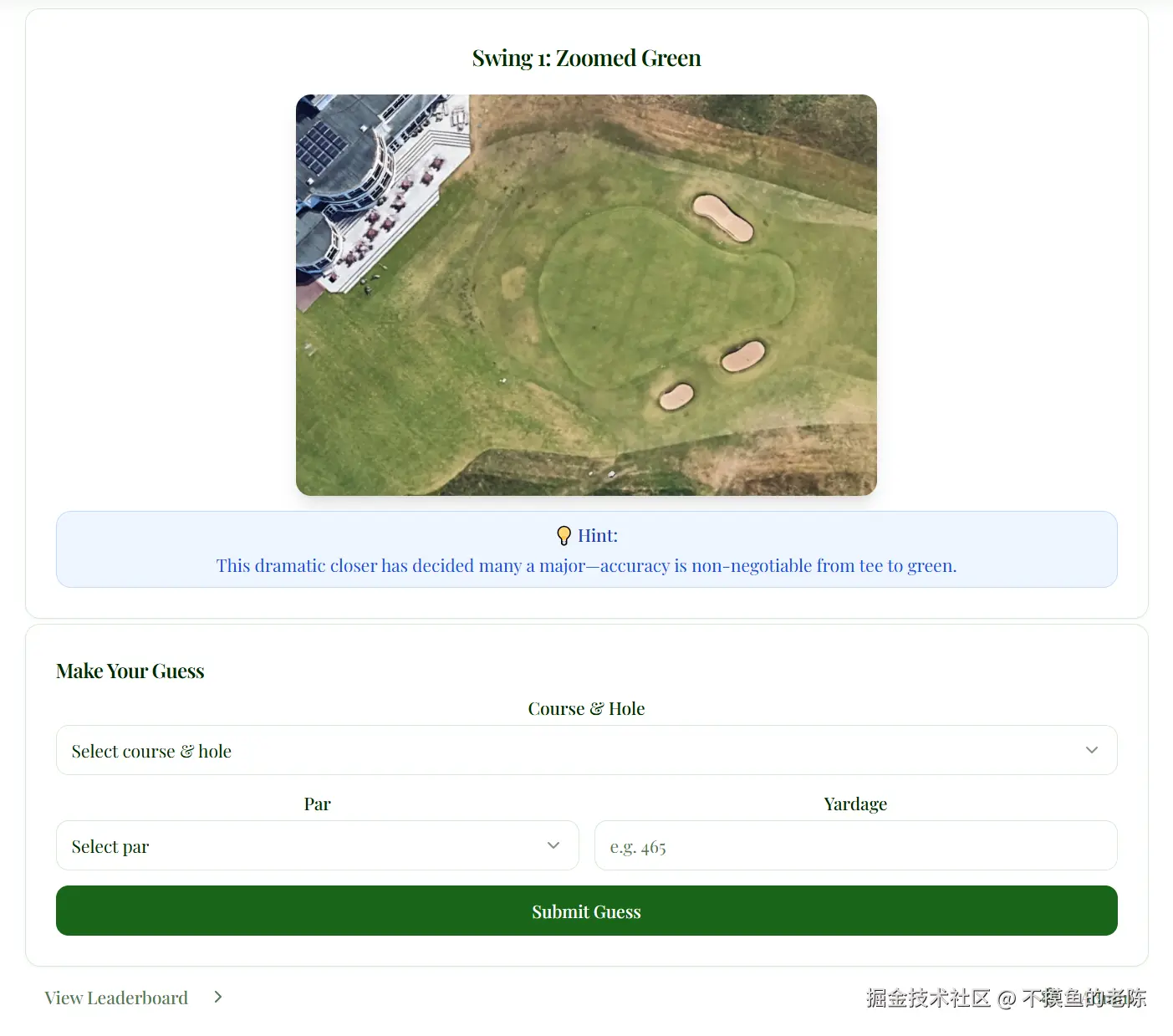 Whatsthathole是一款每日高尔夫谜题游戏,通过视觉线索猜测著名高尔夫球洞,包括课程、洞号、标准杆和码数。