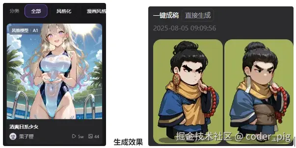 「一键成稿 → 图片推词」选择图片,直接使用推理出来的 生成提示词,试了好些模型,这两个模型生成的风格我还挺喜欢:「影Shadows | 国风Q版模型」和「清爽日系少女」(😏绅士必备~)