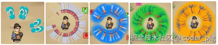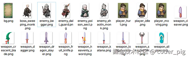 刀具用的「平涂国风刀具 | HOLO-V1」模型,怪物用的「影Shadows | 国风Q版模型」,提示词 直接CV上面Trae 生成的,出图可能出现人物显示不全的情况,可以加下这个提示词:fully in frame, no cutoff,最终产出的所有素材: