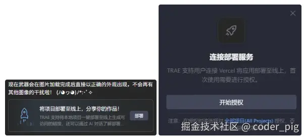 💡 对了,Trae SOLO,支持将项目一键部署到 Vercel 上,这里懒得折腾,还是直接把项目发布到「掘金MCP」~