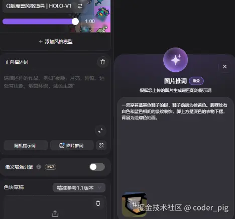 🤣 这双 "蹭亮的小皮鞋",乐死我了,描述词还是得写得更详细些啊,像我这种 "词穷" (不会描述) 的人怎么办呢🤔?简单,直接截图鞋子,然后选个「道具」类的模型,图片推词下: