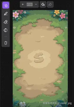 Holopix AI 首页点「一键成稿」模型选「竖版场景-F」,我们的游戏场景比较简单,简单写在提示词就好,不要用 "智能优化",润色后的提示词要素过度,出的图反而不符合我们的预期,生成了6张图,这张合我心意,就是中间的 "S" 有点突兀,点击更多操作「涂抹替换」