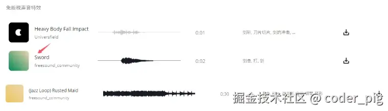 😆 做游戏不得整个音效?这里简单搞搞,直接 pixabay 找自己喜欢的就行,就要两个声音: