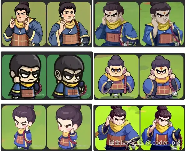 上面是虚假广告的截图,接着试下用三种不同的方式生成角色图。😄 生图过程中,经常会遇到效果不尽如人意的情况,偶尔可以尝试转换思路,采用其它方式来达成目标,毕竟 "条条大路通罗马",路不止一条~