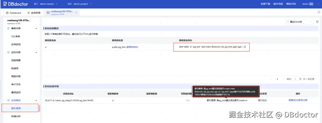 DBdoctor是一款企业级数据库监控、巡检、性能诊断、SQL审核与优化平台,利用eBPF透视数据库内核,可一分钟定位数据库性能问题,实现根因诊断,并给出优化建议。目前DBdoctor v3.2.4.3 版本可快速纳管 Vastbase G100数据库,可为Vastbase G100用户提供高效的数据库性能诊断和监控服务。