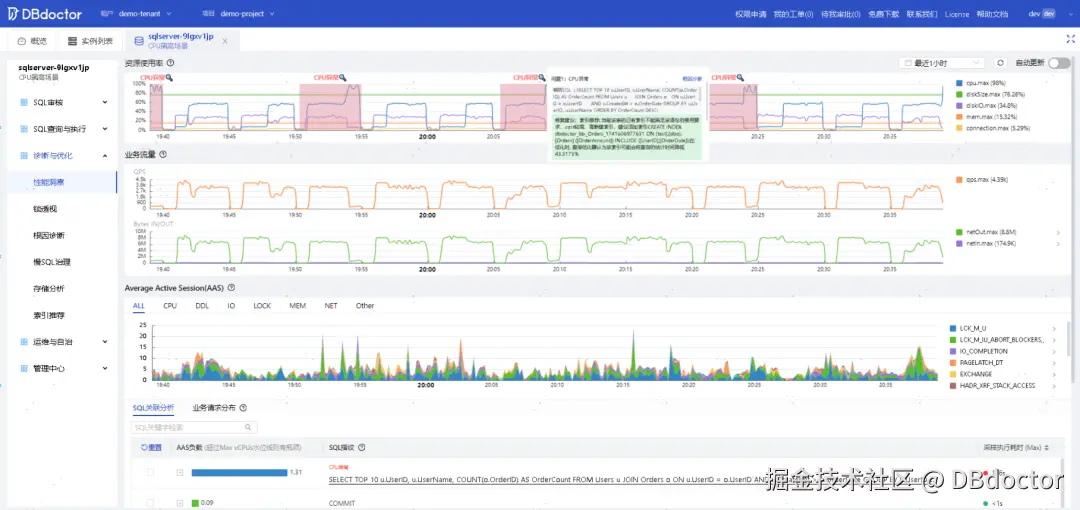 - "优化悖论":知道要优化却不敢动,生怕引发更大故障### DBdoctor的破局之道:从救火到预防的智能进化### DBdoctor是一款面向企业级应用的一体化智能数据库管理平台,深度融合性能调优、SQL治理与数据防护三大核心模块,提供从实时诊断分析到智能优化加固的全生命周期数据库解决方案。可以对数据库做细粒度的扫描,帮助您快速找到数据库性能问题,一分钟内提供精准的SQL优化改写建议。覆盖全流程的SQL审核和安全变更,保障企业代码质量与数据安全。针对SQL Server数据库,DBdoctor可针对性的提供以下功能:| |