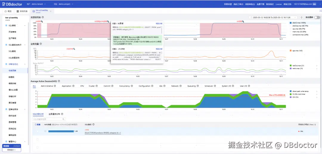 同时,当数据库出现CPU、IO等抖动异常场景,会自动进行根因分析,并给出最佳优化建议,从而降低资源消耗。