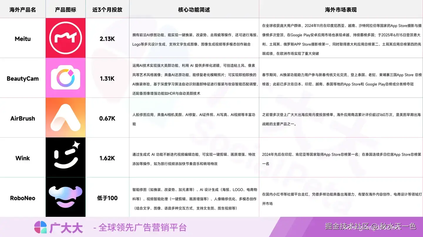 近3个月美图海外在投产品,部分数据来源网络