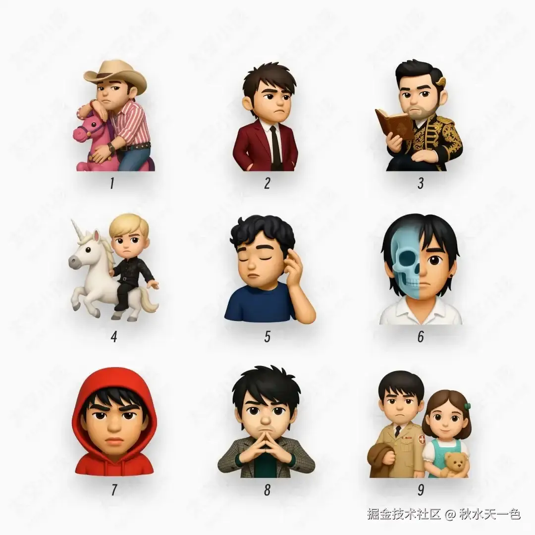 指令:学习苹果iOS系统表情符号风格,将照片中的人生成为此风格的3D贴纸头像。模仿形体、脸型、肤色、五官表情。图中人物面部装饰、发型以及发饰、服装、配饰、表情、姿势保持一致。背景白底,只要完整人物,确保最终图像看起来像官方的iOS表情符号贴纸,并生成5秒动态表情包。