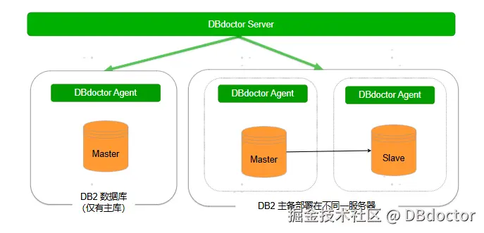 ### 一.如何快速纳管DB2数据库****下面将详细介绍如何使用DBdoctor纳管DB2并对其进行性能诊断。 1.DB2数据库纳管部署架构: