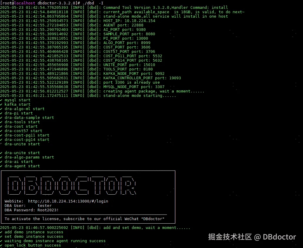 用系统root账号进行安装包解压,然后执行 ./dbd -I
