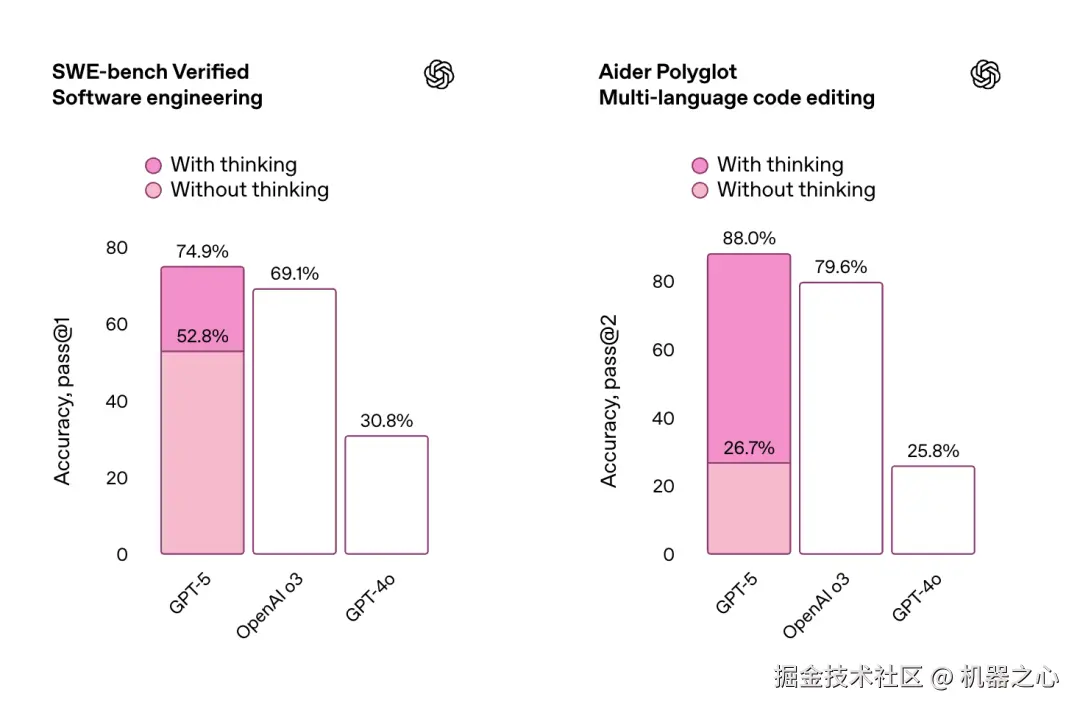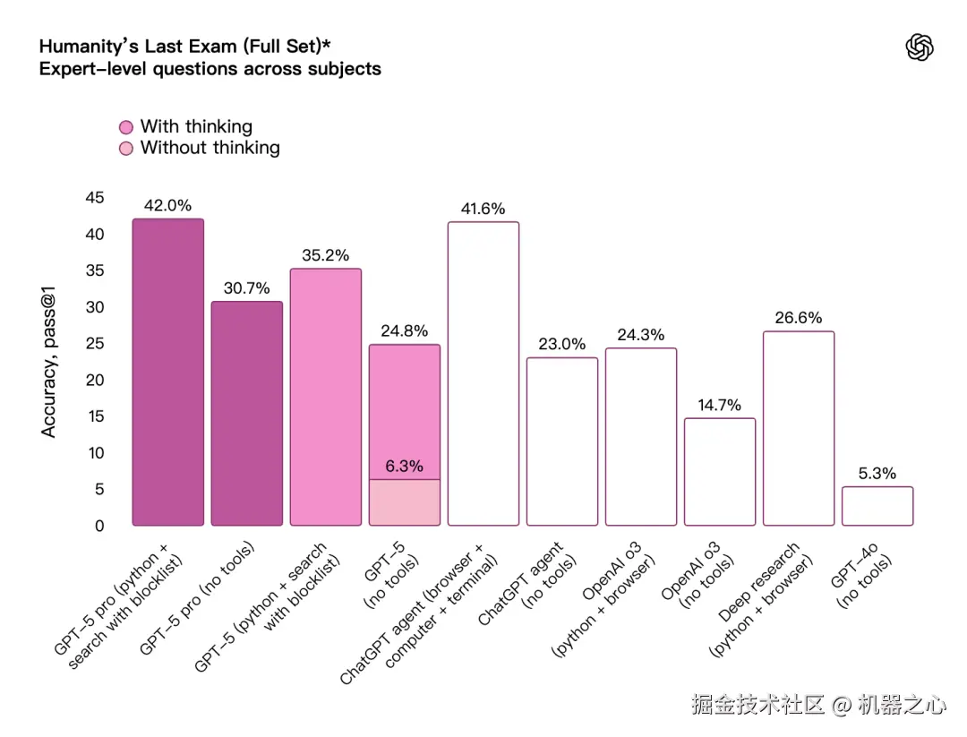 接下来,就让我们看下 GPT-5 在各项基准上的成绩。