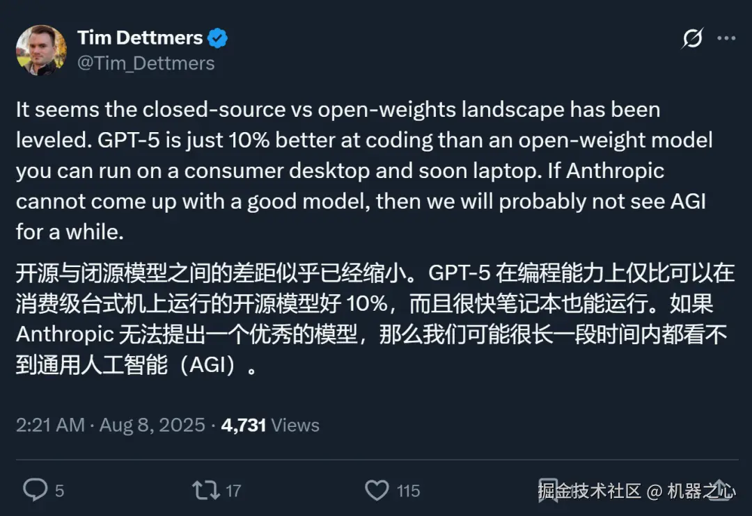 总体来看,GPT-5 的表现在很多人看来没有达到预期。