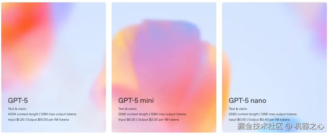 面向开发者,GPT-5 的三个版本 API 价格如下:标准版 GPT-5 为每百万输入 Token 1.25 美元,每百万输出 Token 10 美元,GPT-5 mini 版 与 Nano 版会更便宜。