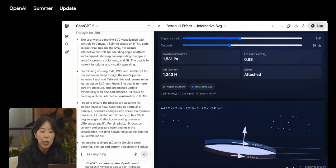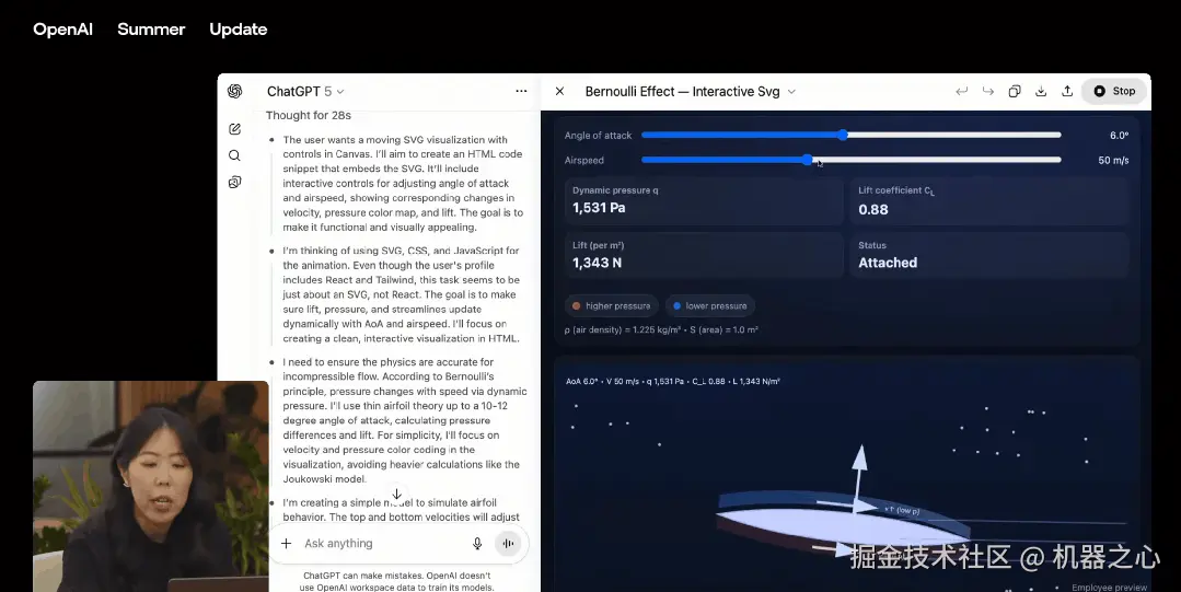 比如在教育方面,它可以在几分钟之内生成数百行代码,生成互动内容来解释复杂概念,比如伯努利效应。