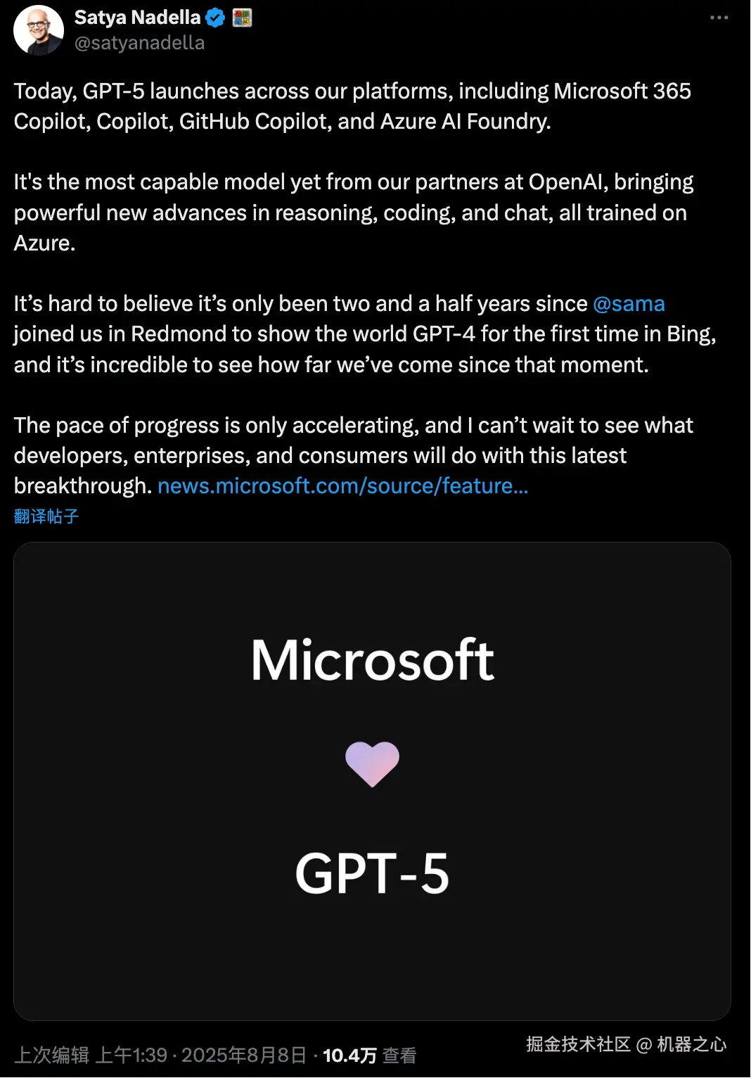 当然,GPT-5 也第一时间就上线到了微软的平台。