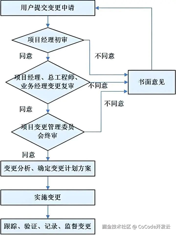 (3)分级审批:我们需根据需求变更的影响范围设置不同的级别进行审批。微小变更,如修改文字等,产品经理 + 开发负责人审批;重大变更,如新增核心模块,需提交项目委员会审批,避免单一角色审批。