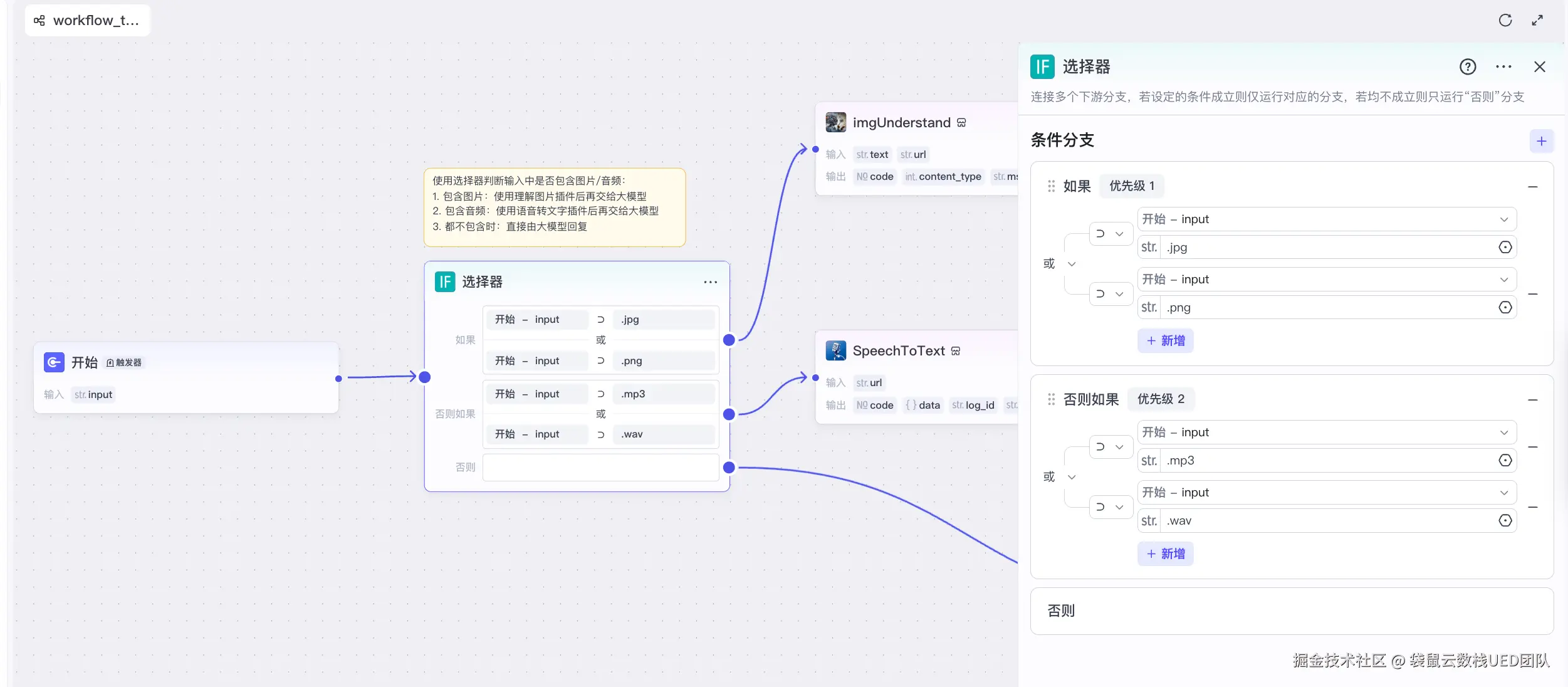 选择器节点:输入内容满足指定条件的时候会走到相应的分支中