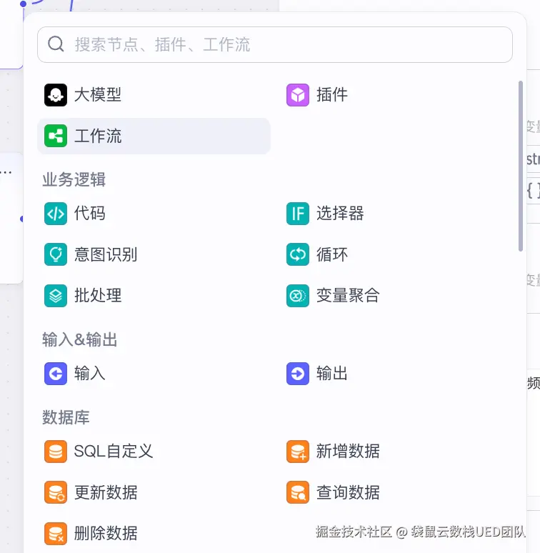 在使用节点编排工作流时,灵活性和扩展性是实现高效编排的关键。工作流的开始节点、结束节点、输出节点、插件节点、子工作流节点、代码节点、SQL 自定义节点、新增数据节点、查询数据节点、更新数据节点、删除数据节点、问答节点、批处理节点、循环节点、变量聚合节点、变量节点、选择器节点均支持多种变量类型,包括 String、Integer、Number、Boolean、Object、File 和 Array等。你可以根据实际需求灵活选择合适的数据类型,而无需额外的数据转换,从而提升工作流编排的灵活性和扩展性。