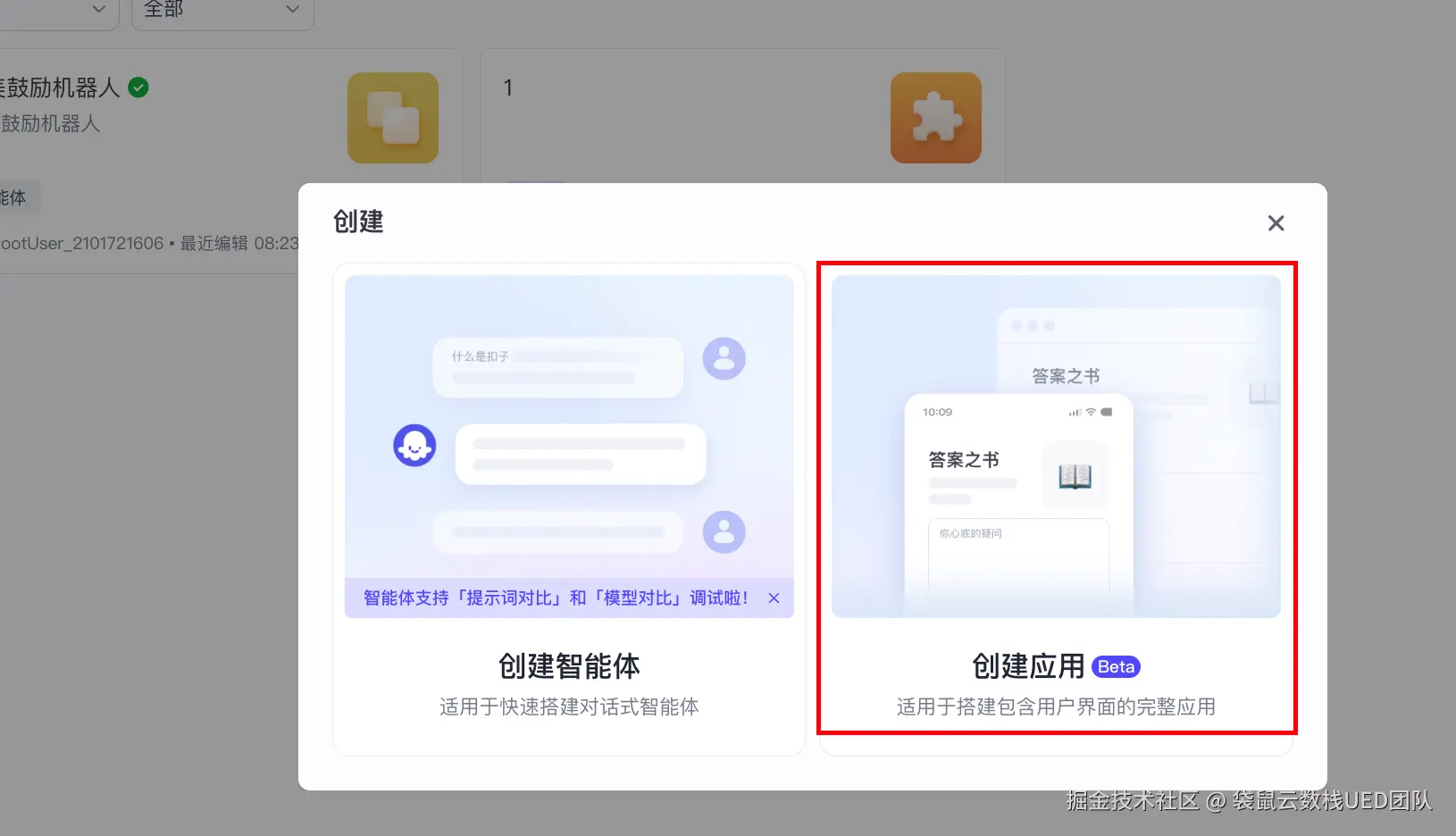 生态:创建完应用之后还支持发布到市场或者生态平台,快速给到他人使用,来增加曝光度 和 探索商量化能力。