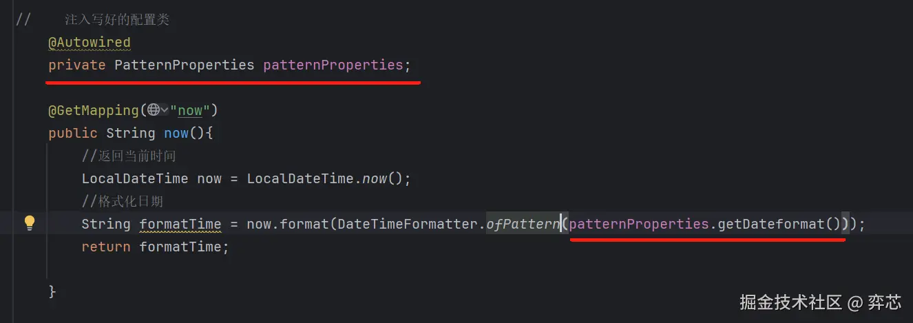 在user-service中将pattern.dateformat这个属性结合@Value注解注入到UserController中做测试: