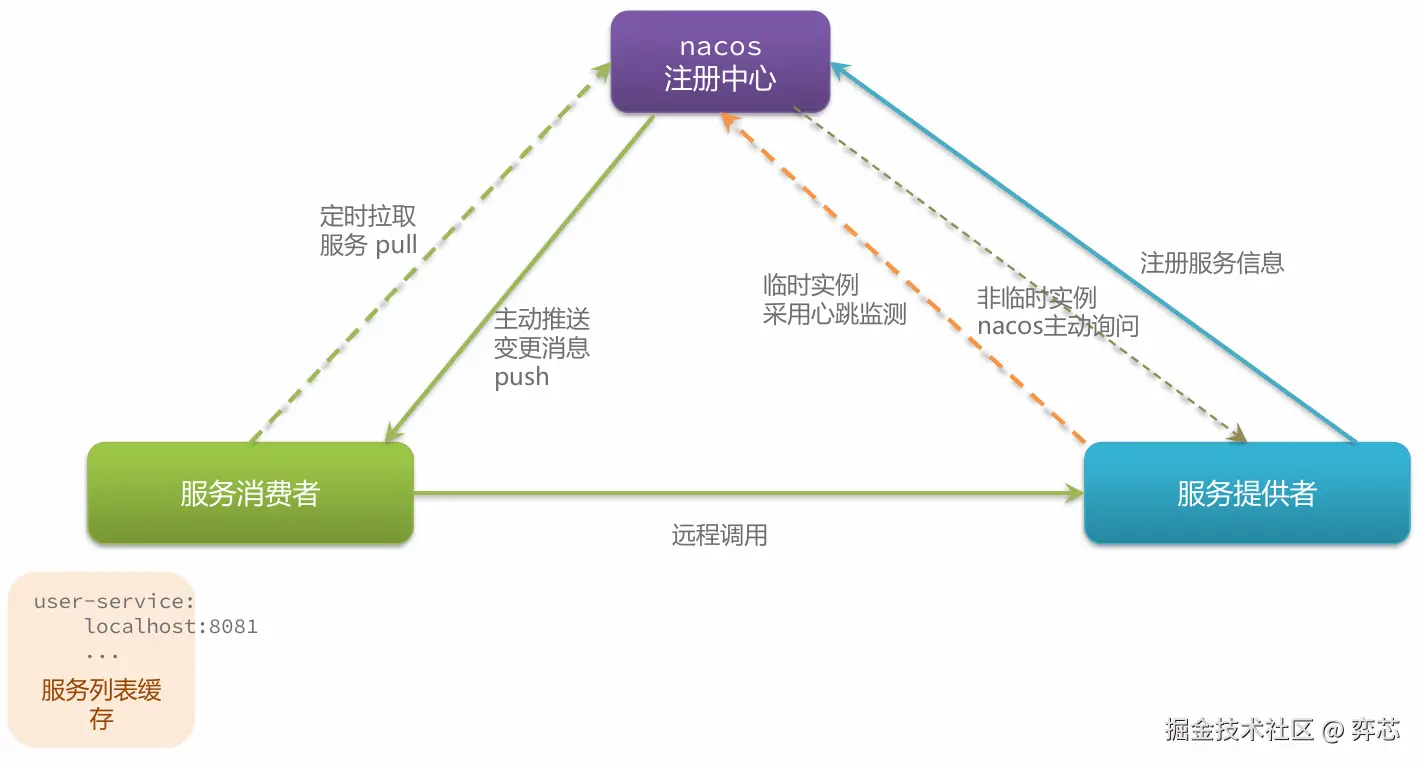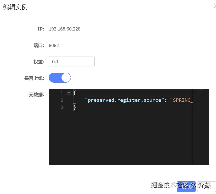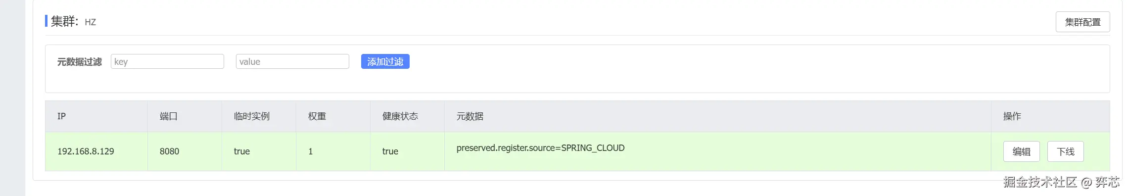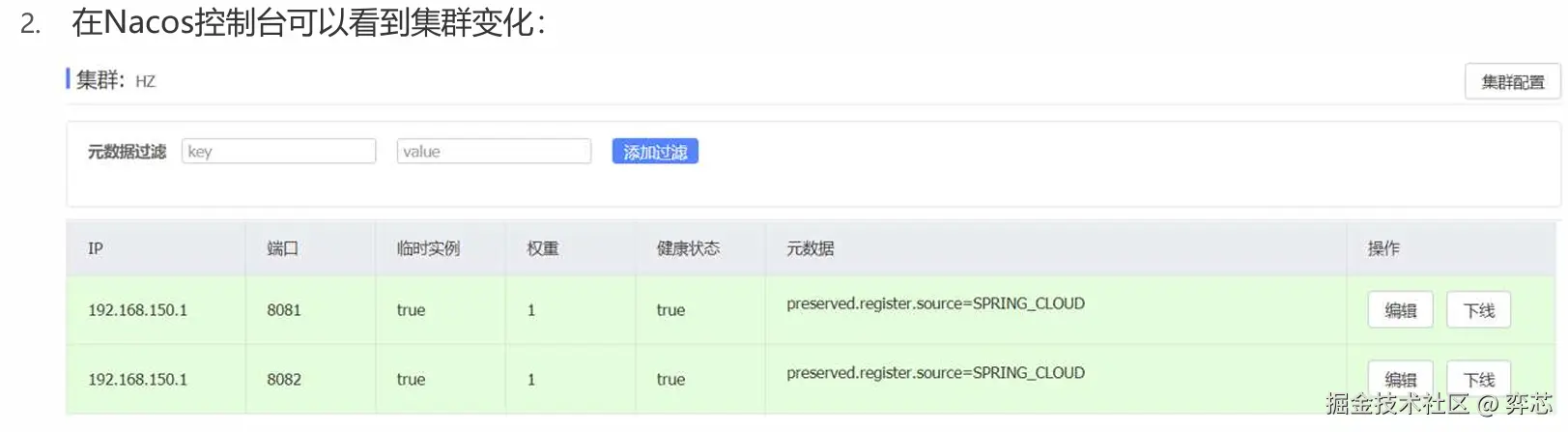 服务注册到Nacos时,可以选择注册为临时或非临时实例,通过下面的配置来设置: