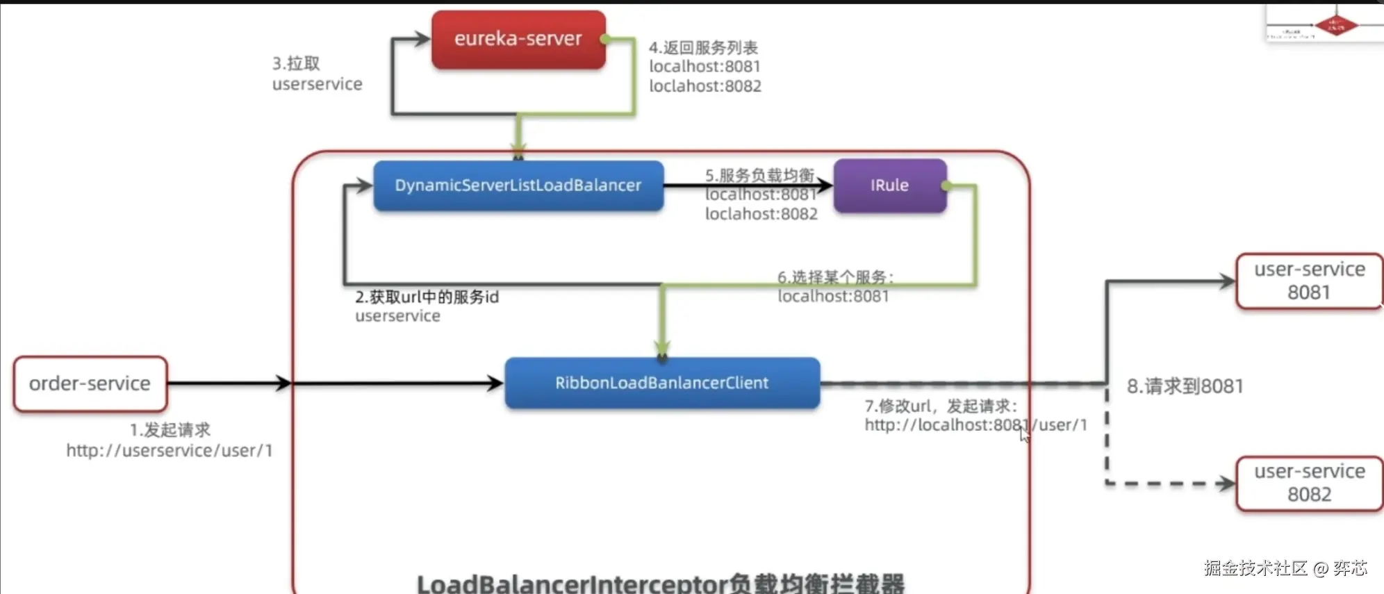 ③ 确定了可用实例列表后,再采用随机负载均衡挑选 实例