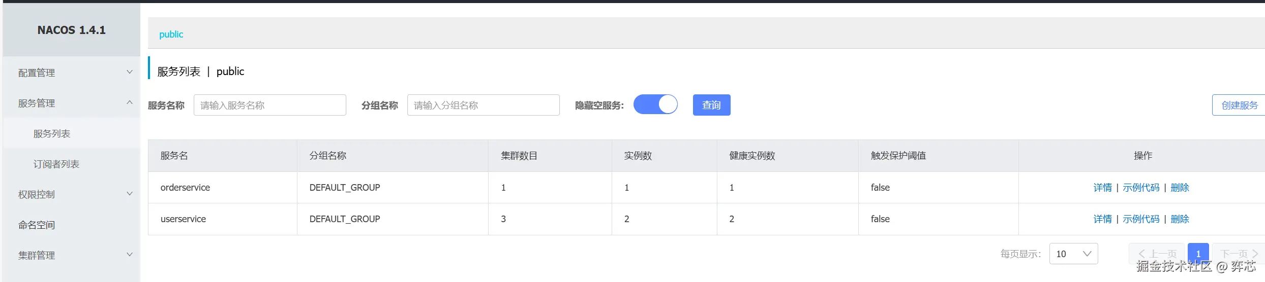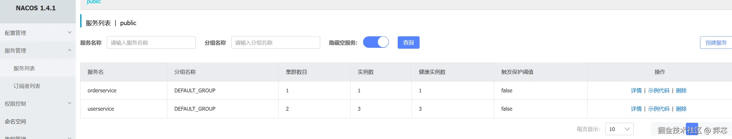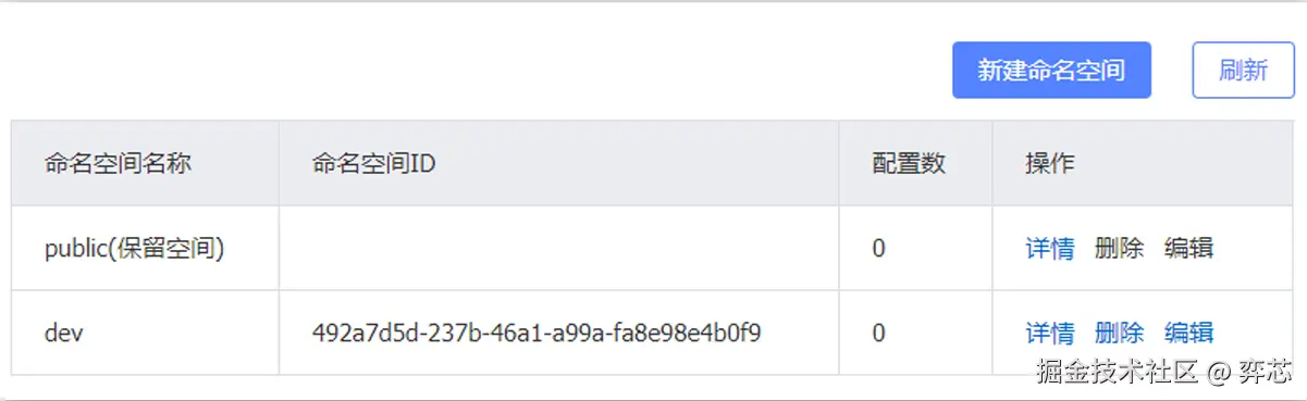 在Nacos控制台可以创建namespace,用来隔离不同环境