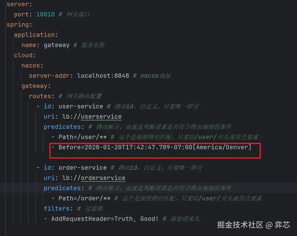 每个微服务都有不同的断言 工厂配置,有的微服务必须几点之前、有的微服务必须什么IP