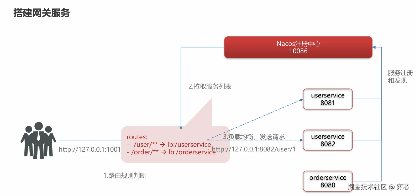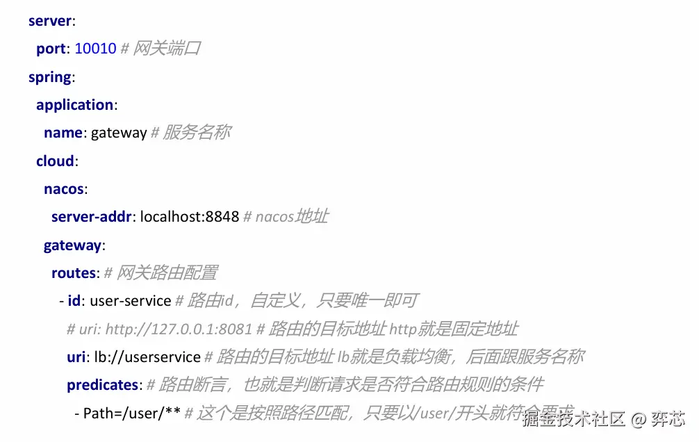 uri: lb://userservice # 路由的目标地址 lb就是负载均衡,后面跟服务名称