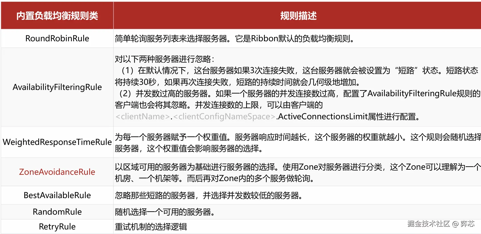 Ribbon的负载均衡规则是一个叫做IRule的接口来定义的,每一个子接口都是一种规则